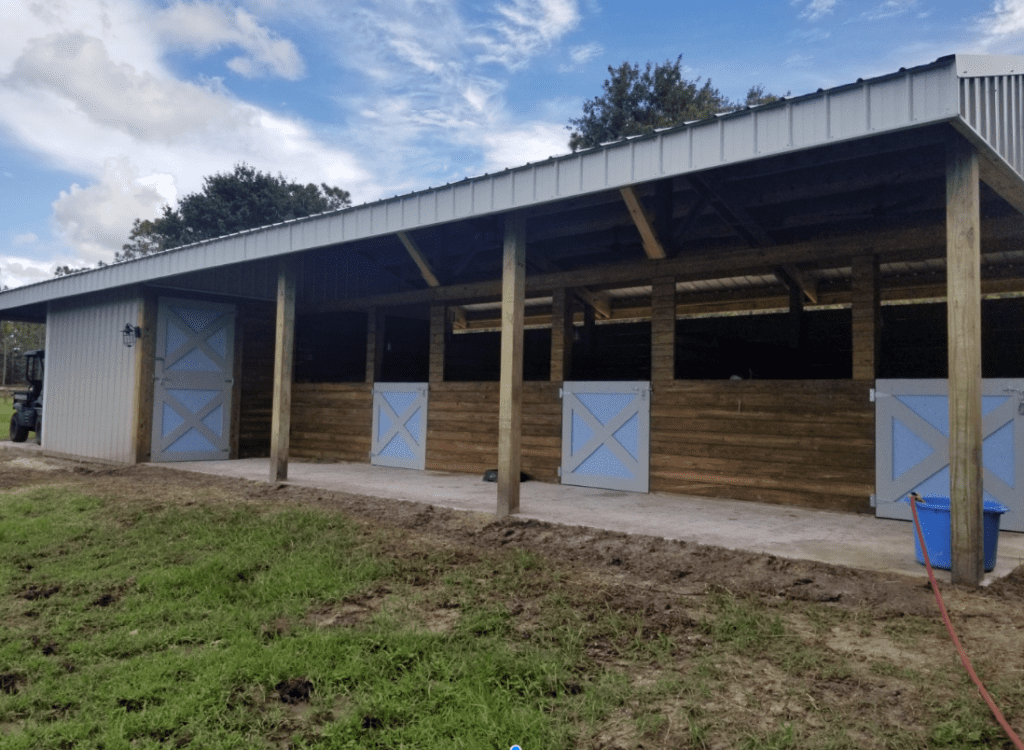 We had Bill build our horse barn several years ago and several hurricanes later the structure is just like new. Bill and his crew were very fast in putting up our barn. Bill was able to offer several suggestions thanks to his years of experience. He built us a 4 stall, feed room and tack room barn with a center aisle. We couldn’t be happier.